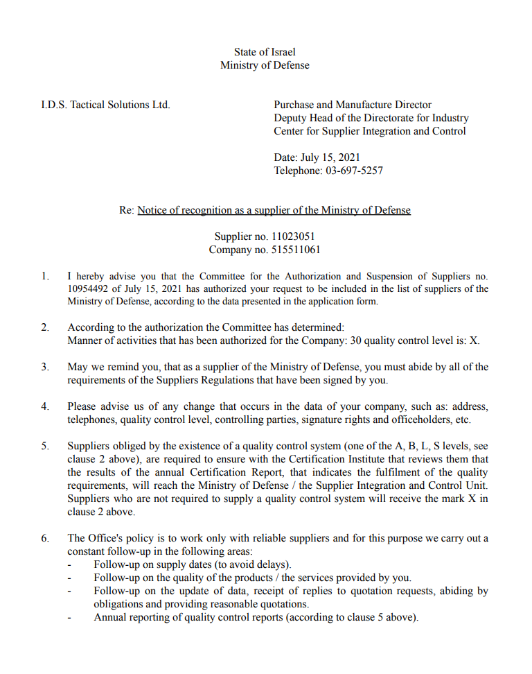 IDS הינה חברה ישראלית עם ותק של מעל 15 שנים בתחום הציוד הטקטי.