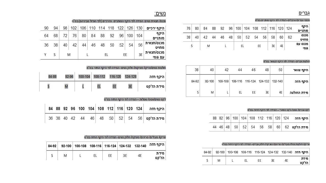 מדריך מידות COMBATEX