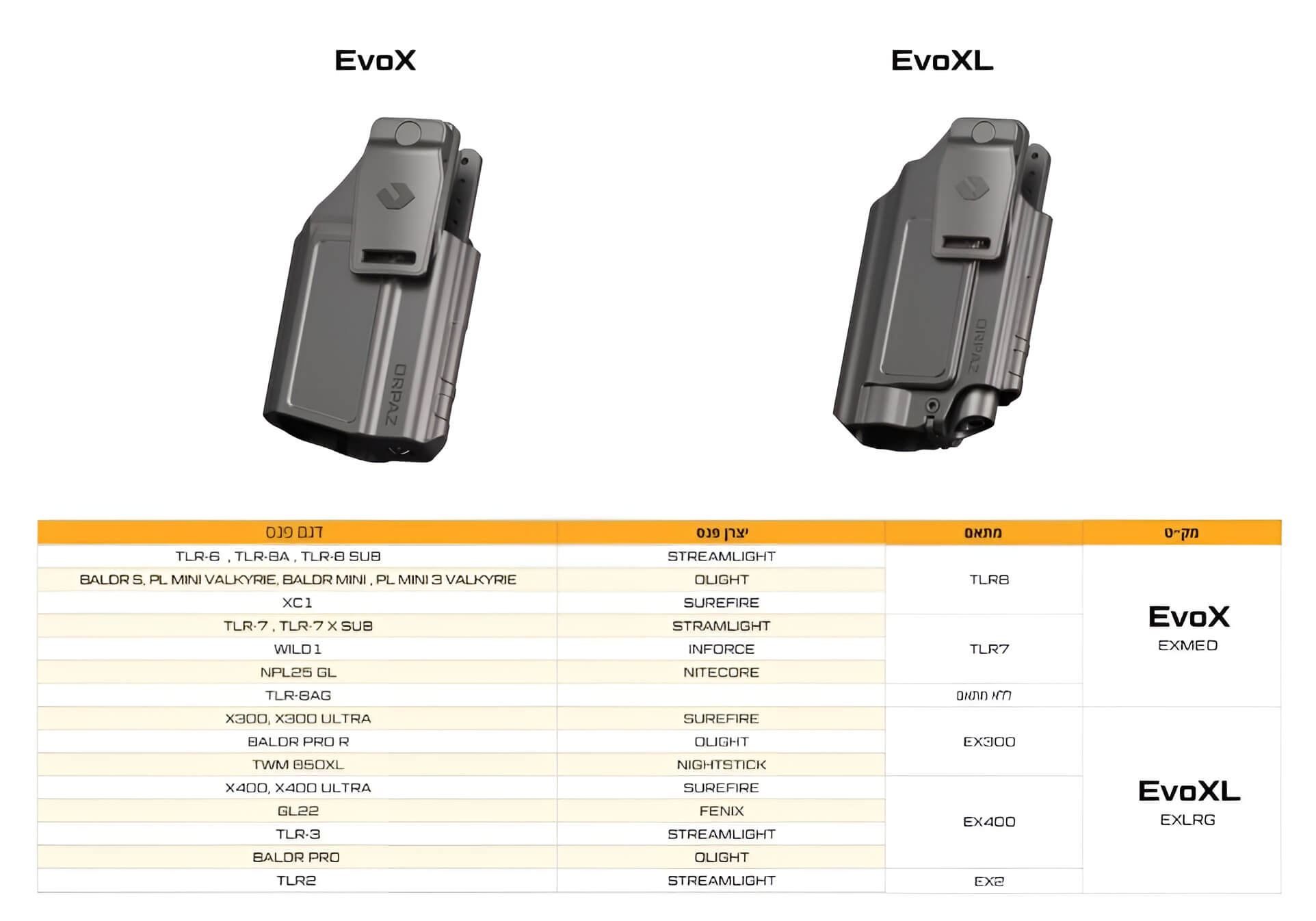 נרתיק אורפז פנימי למגוון רחב של אקדחים עם אמצעי תאורה – Orpaz EvoX